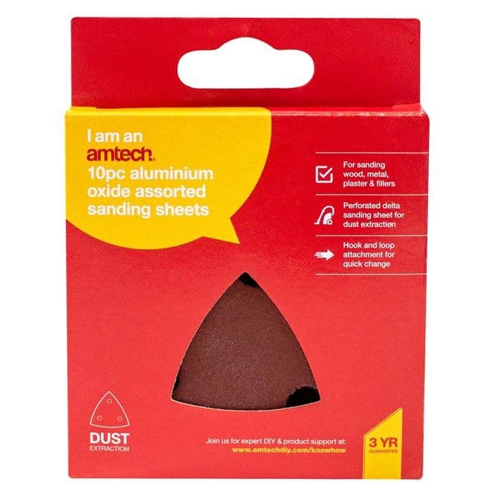 Extra Value Products Home / Value / Extra Value Products / 10pc Aluminium Oxide Assorted Sanding Sheets (With Dust Extraction) 10pc Aluminium Oxide Assorted Sanding Sheets (With Dust Extraction) 10pc Aluminium Oxide Assorted Sanding Sheets (With Dust Extraction) £3.81 Stock Status: In Stock Add to your Wish List Information Specifications Reviews 10pcs 80 x 80 mm. 2 x P40 grit. 2 x P60 grit. 2 x P80 grit. 2 x P120 grit. 2 x P240 grit. For sanding wood, metal, plaster & fillers. Perforated delta sanding sheet for dust extraction. Hook and loop attachment for quick change. Compatible with Amtech V6010, Amtech V6510, as well as other sanders. . Pack Qty: 1 Brand: amtech Weight: 0.04kg Customer reviews No reviews left yet Write A Review Most RecentTop Rated No reviews have been left for this product, be the first to leave a review