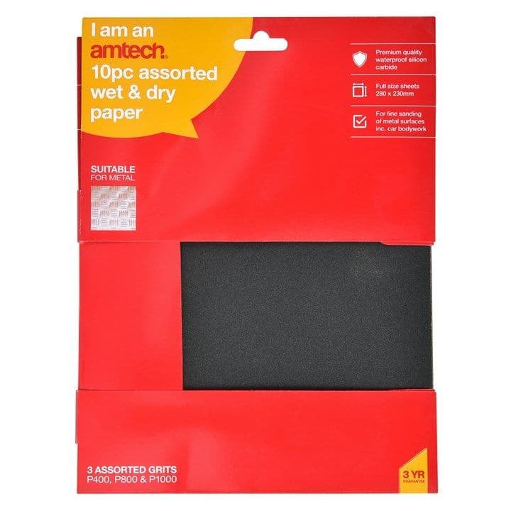 Extra Value Products Home / Value / Extra Value Products / 10pc Assorted Wet & Dry Silicon Carbide Paper (P400/800/1000) (280x230mm) 10pc Assorted Wet & Dry Silicon Carbide Paper (P400/800/1000) (280x230mm) 10pc Assorted Wet & Dry Silicon Carbide Paper (P400/800/1000) (280x230mm) £5.62 Stock Status: In Stock Add to your Wish List Information Specifications Reviews Premium quality waterproof silicon carbide. Full size sheets - 280 x 230mm. For fine sanding of metal surfaces including car bodywork. Contents: 3 x P400, 4 x P800 & 3 x P1000 grit. Pack Qty: 1 Brand: amtech Weight: 0.18kg Customer reviews No reviews left yet Write A Review Most RecentTop Rated No reviews have been left for this product, be the first to leave a review