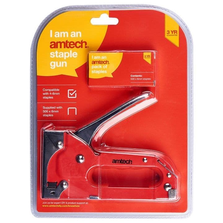 Extra Value Products Home / Value / Extra Value Products / Staple Gun Staple Gun Staple Gun £8.44 Stock Status: In Stock Add to your Wish List Information Specifications Reviews Handy staple gun for one hand operation. For use with crown staples with 4 - 8mm leg length. Ergonomically designed grip and easy squeeze operation. Suitable for a wide range of household and D.I.Y. applications. Supplied with approx 500pc 6mm staples. Similar Items: B3725, B3750. Pack Qty: 1 Brand: amtech Weight: 0.44kg Customer reviews No reviews left yet Write A Review Most RecentTop Rated No reviews have been left for this product, be the first to leave a review